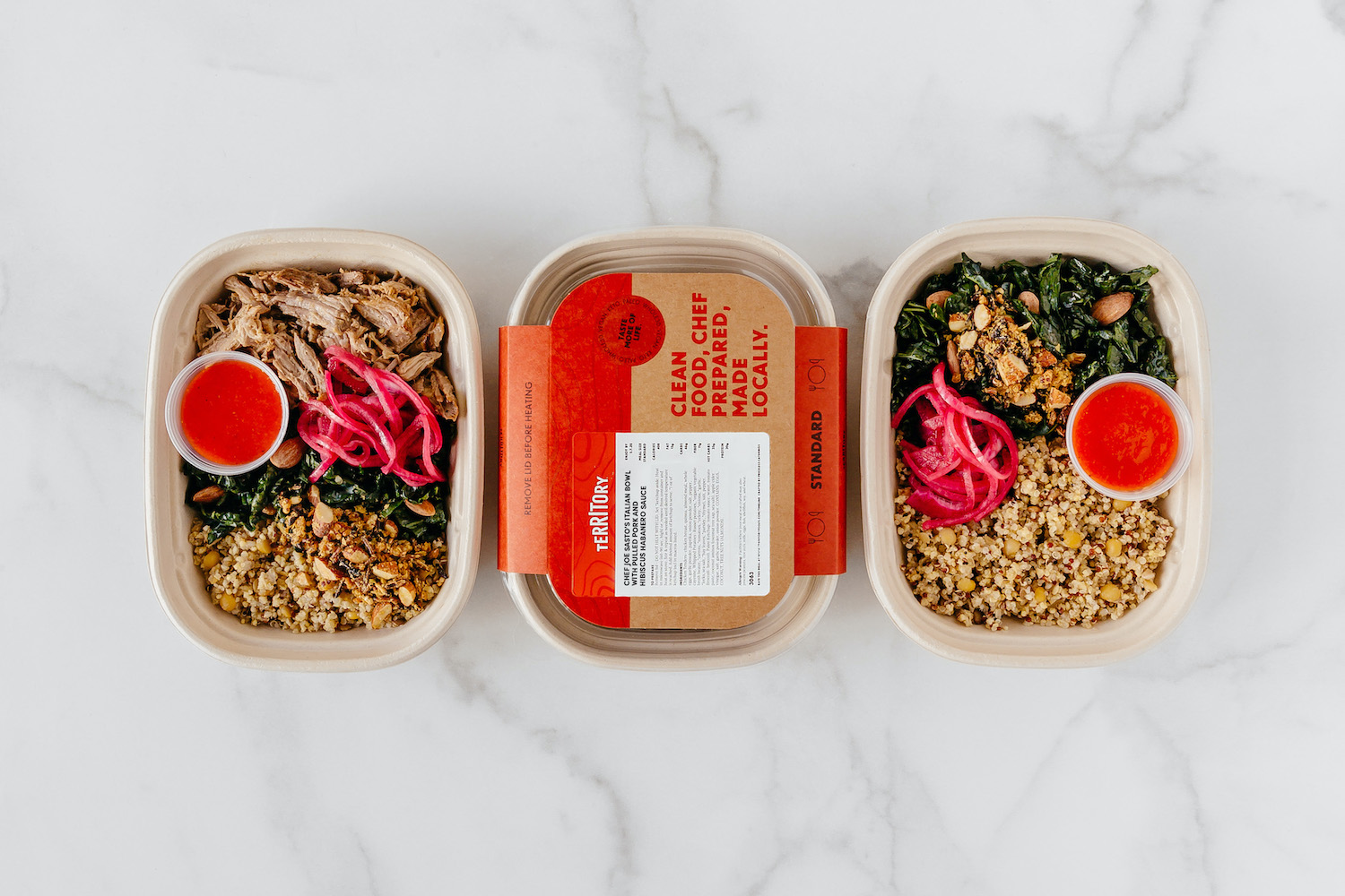 Chef Joe Sasto, who specializes in Italian health food, has brought two new, delicious meals to Territory: Italian Quinoa Bowl with Citrus Hibiscus Pork & Roasted Red Pepper Dressing and Italian Quinoa Bowl with Sweet Potatoes & Roasted Red Pepper Dressing. His meals are inspired by Italy and bountiful California – and his vigor for creating these meals just for Territory is unmatched.